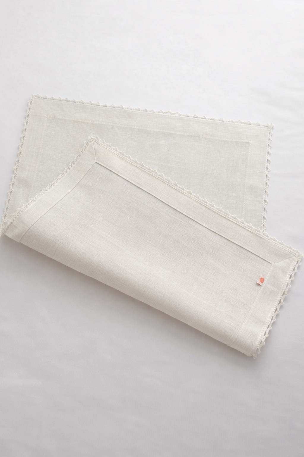 Натуральна лляна серветка з делікатним мереживним оздобленням — ідеальна основа для створення власного вишитого виробу.